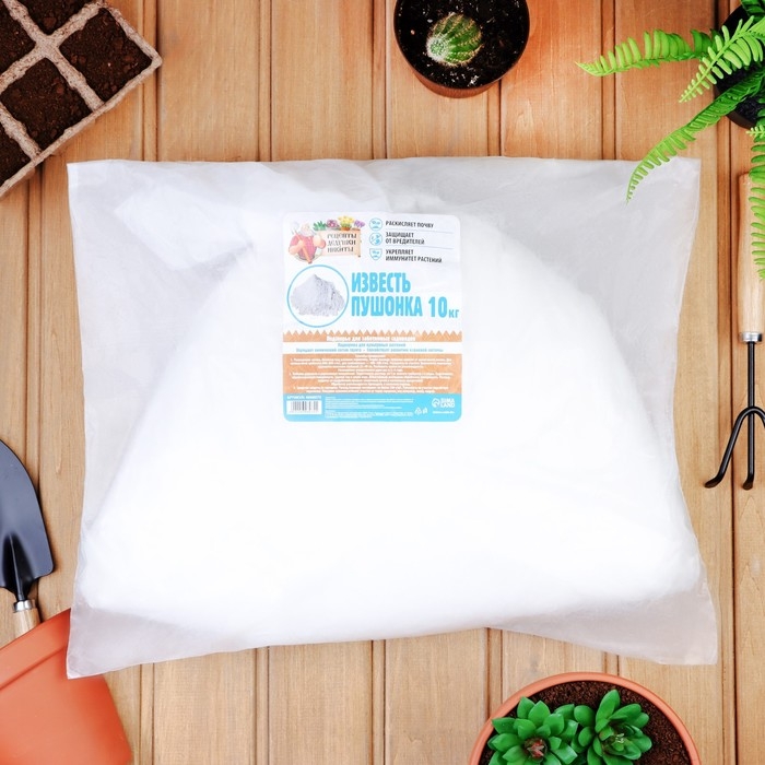 Гашеная известь (пушонка) — имеет широкое применение в огороде. Это средство оптимизирует рН почвы, особенно сильно кислой, улучшает ее физико-химические свойства. Кальций — необходимый элемент для развития и роста растений, ведь он способствует развитию и укреплению корневой системы, повышает иммунитет растений, улучшает усвояемость азота из почвы и активизирует деятельность клубеньковых бактерий. Но и переизбыток этого элемента вреден, поскольку многие растения не переносят большое количество кальция в почве.Кроме регуляции кислотности почв, гашеная известь применяется для побелки деревьев, борьбы с вредителями, обработки садового от плесени, борьбы с сорняками. Применяется пушонка и в строительстве, добавляется в смеси для штукатурки стен, укладки кирпича. Гашеная известь относится к едким веществам, поэтому при ее использовании следует надеть перчатки, марлевую повязку и по возможности работать на свежем воздухе.