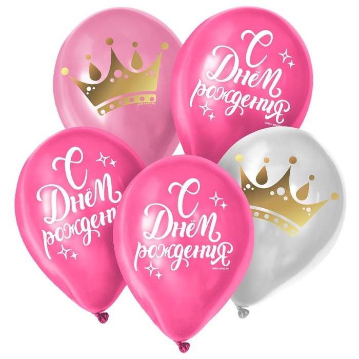 Воздушный шар латексный 12" «С Днём Рождения», корона, 50 шт.