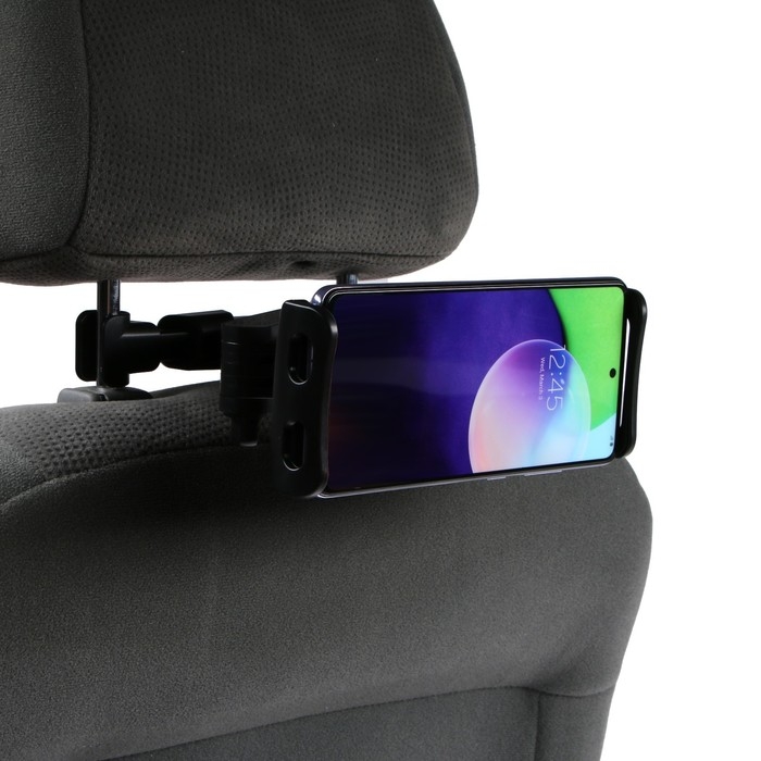 Держатель для телефона или планшета на подголовник авто, телескопический, 11-21 см., черный