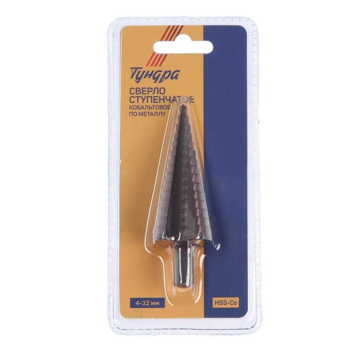 Сверло ступенчатое ТУНДРА, HSS-Co, трехгранный хвостовик, 4 - 32 мм
