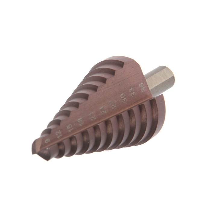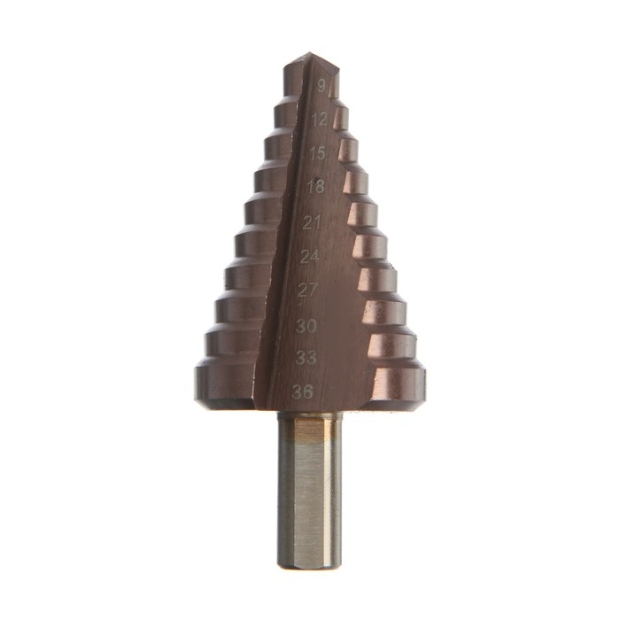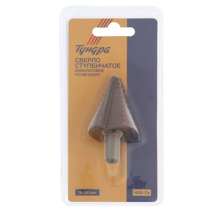 Сверло ступенчатое ТУНДРА, HSS-Co, трехгранный хвостовик, 9 - 36 мм