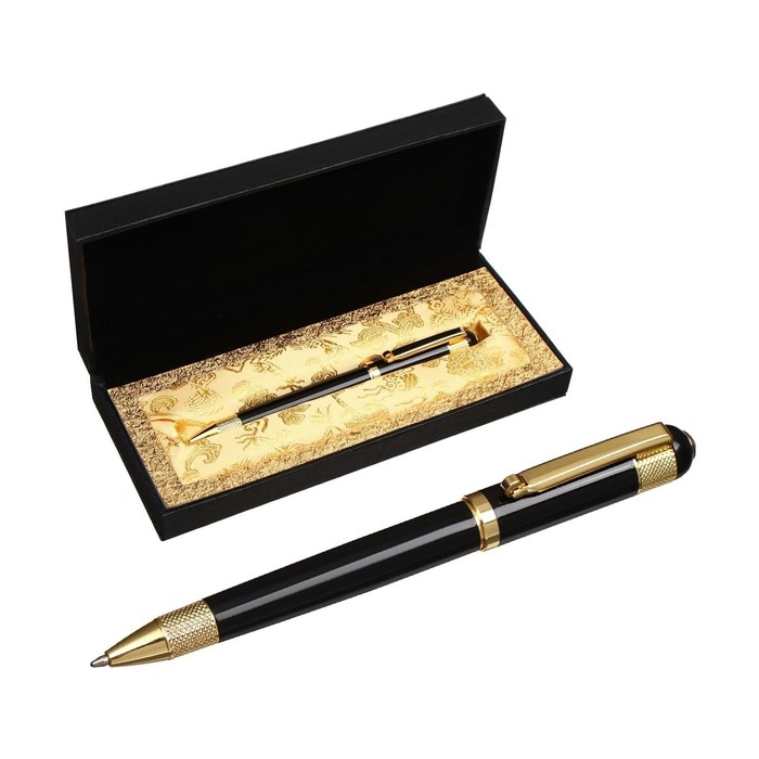 Ручка подарочная, шариковая "Вензура" в кожзам футляре, поворотная, корпус черный с золотым