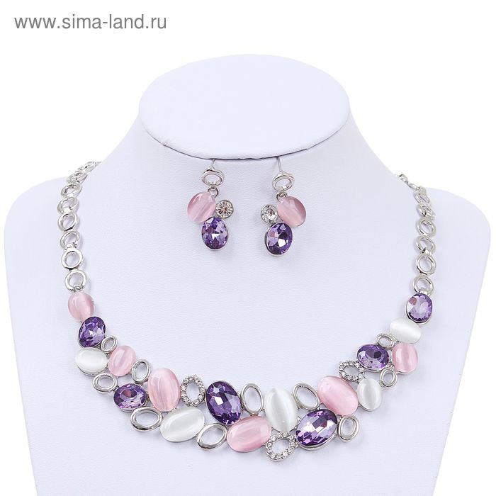 Набор 2 предмета: серьги, колье «Листочки», цвет розовый в серебре, 40 см