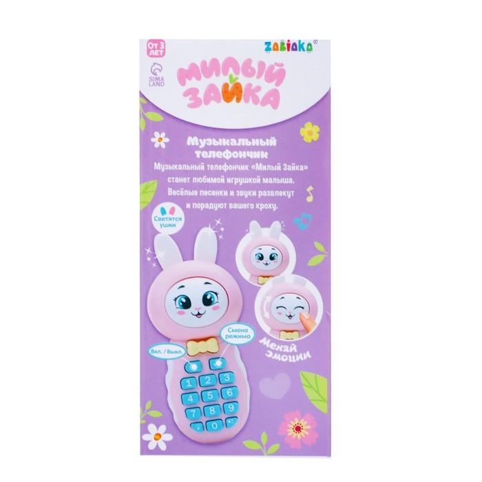 Музыкальный телефончик «Милый зайка» привлечёт внимание трогательным дизайном и надолго увлечёт малыша благодаря множеству полезных функций. Игрушка не только развлечёт ребёнка — с ней можно осваивать новые навыки!