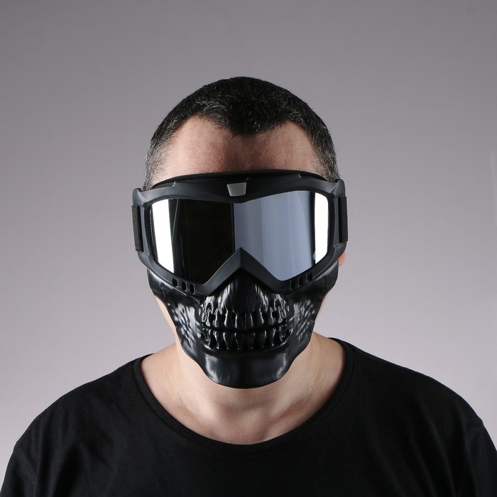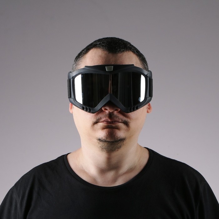 Очки-маска для езды на мототехнике, разборные, визор хром, цвет черный