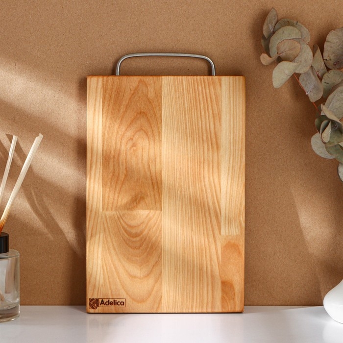 Доска разделочная с металлической ручкой Adelica, 24×16×1,8 см, пропитана минеральным маслом, берёза
