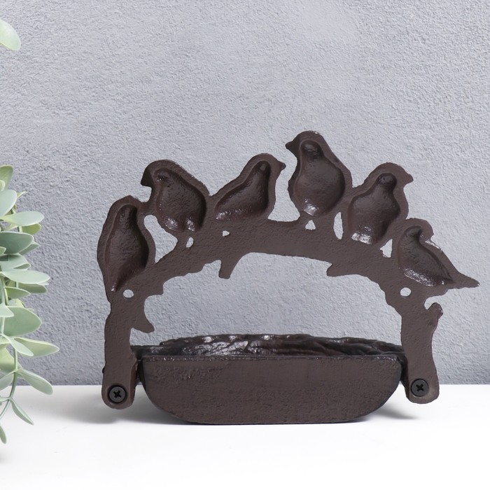 Сувенир чугун подставка "Шесть птиц на корзине" 14,5х9х19 см