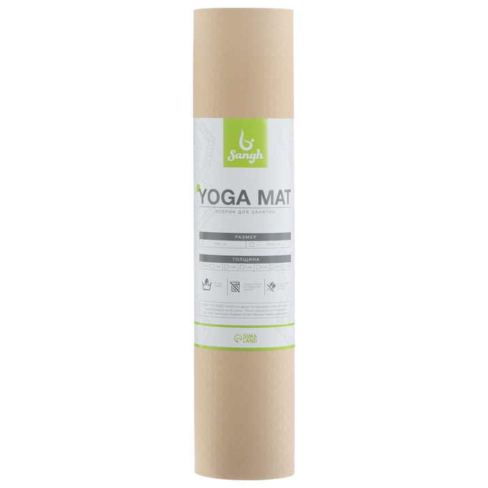 Коврик для йоги Sangh, 183х61х0,6 см, цвет бежевый/коричневый