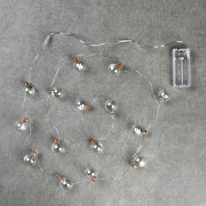 Гирлянда «Нить» 1.6 м с насадками «Шарики со снежинкой», IP20, серебристая нить, 15 LED, батарейки ААх2 (нет в комплекте), свечение мульти