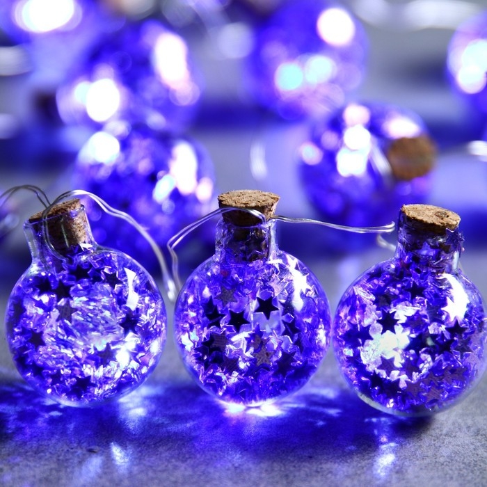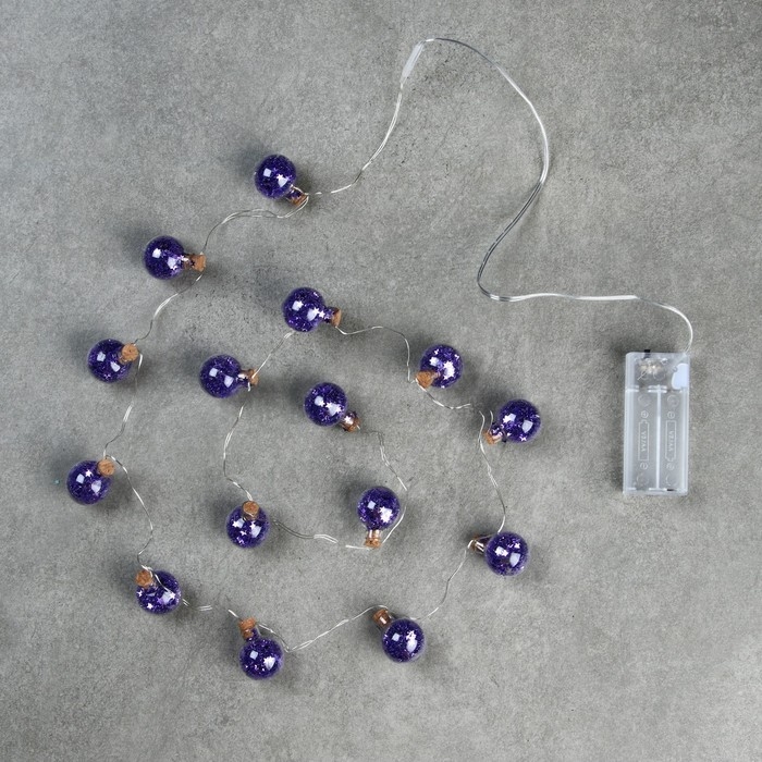 Гирлянда «Нить» 1.6 м с насадками «Синие шарики», IP20, серебристая нить, 15 LED, батарейки ААх2 (нет в комплекте), свечение белое