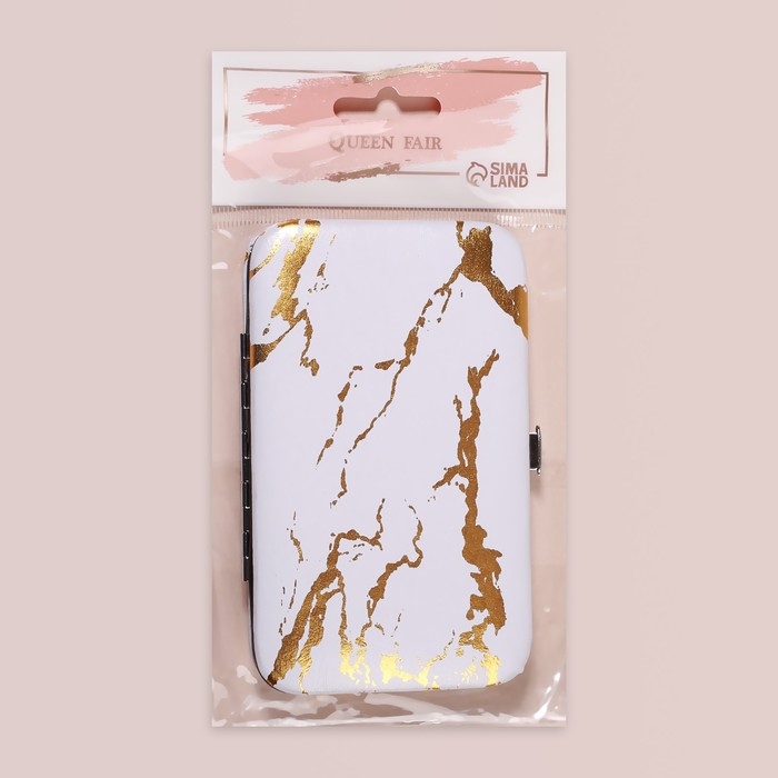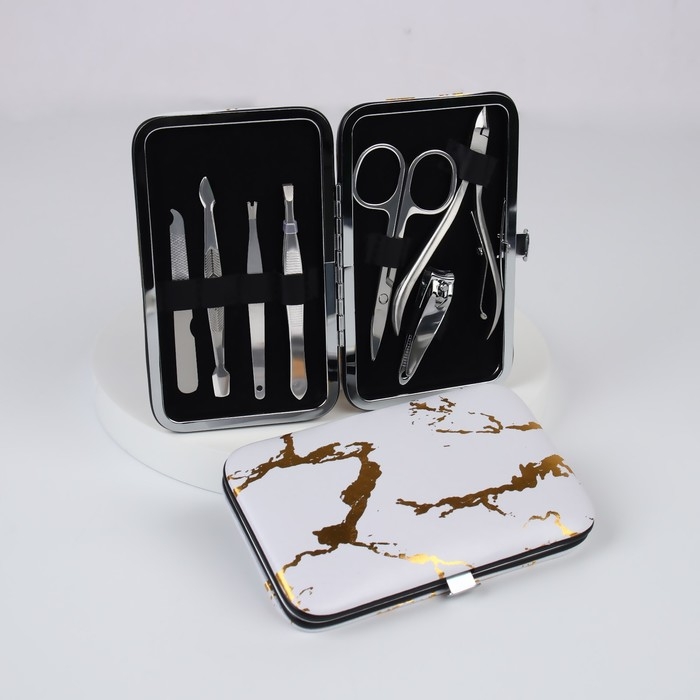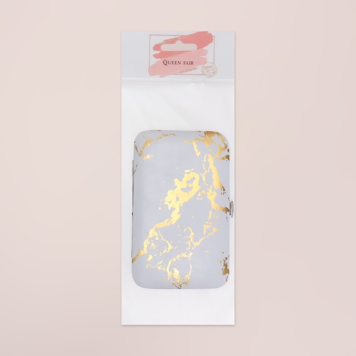 Набор маникюрный, 7 предметов, в футляре, рисунок серый/золотистый