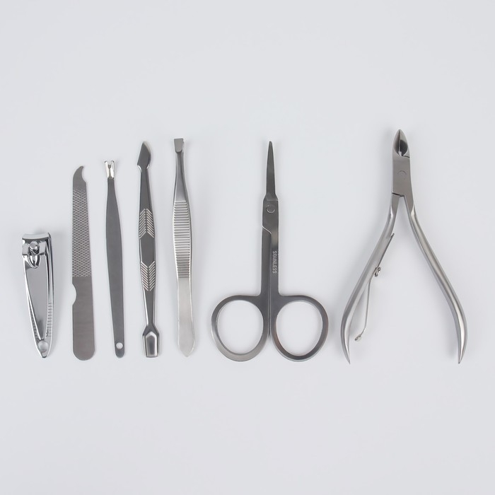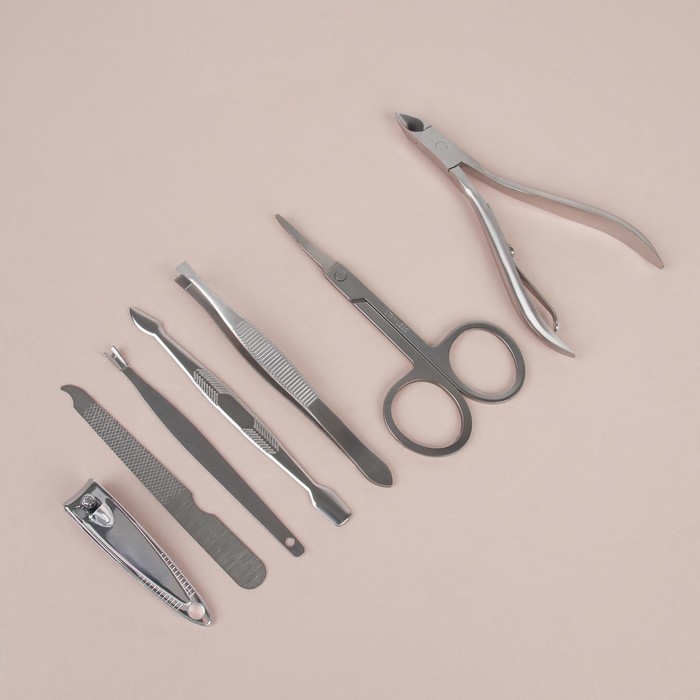 Набор маникюрный, 8 предметов, в футляре, цвет коричневый