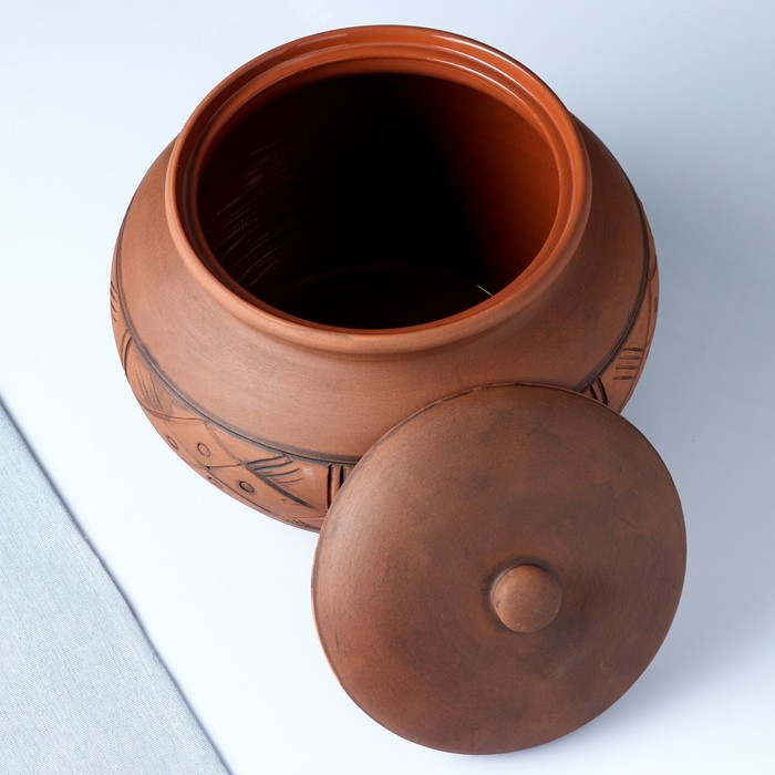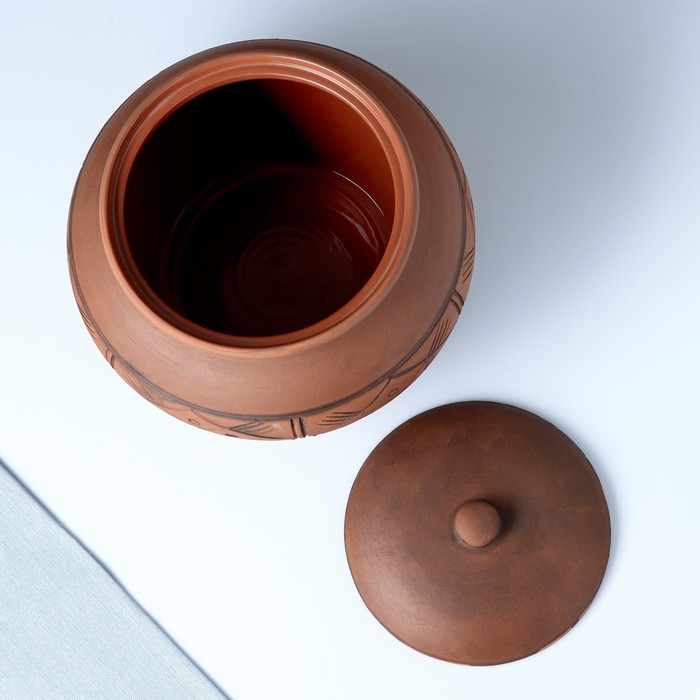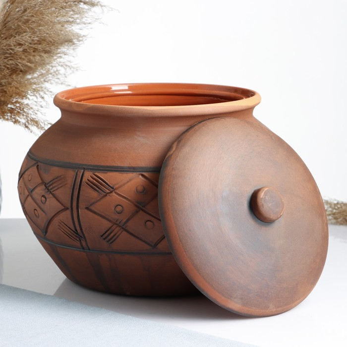 Жаровня Кунгурская керамика «Орнамент», 7 л, с прорезью, молочение, коричневая