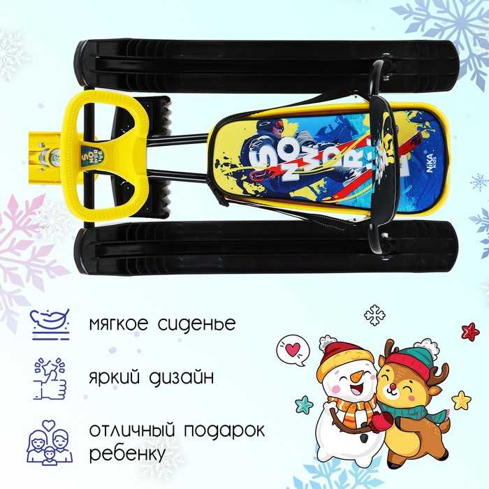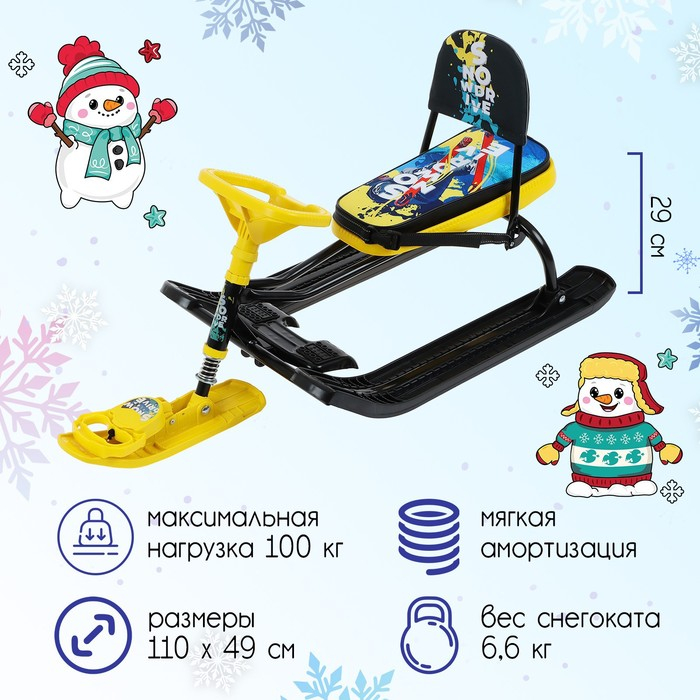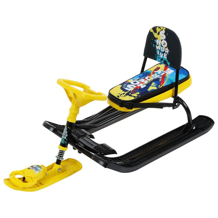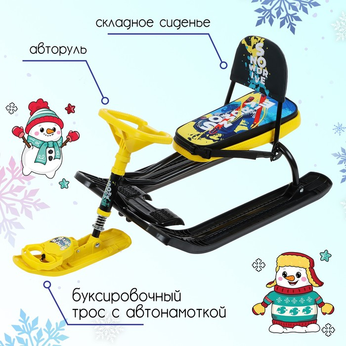 Снегокат «Тимка спорт 4-1 Зимний спорт», ТС4-1/С, со спинкой и ремнём безопасности, цвет чёрный/жёлтый