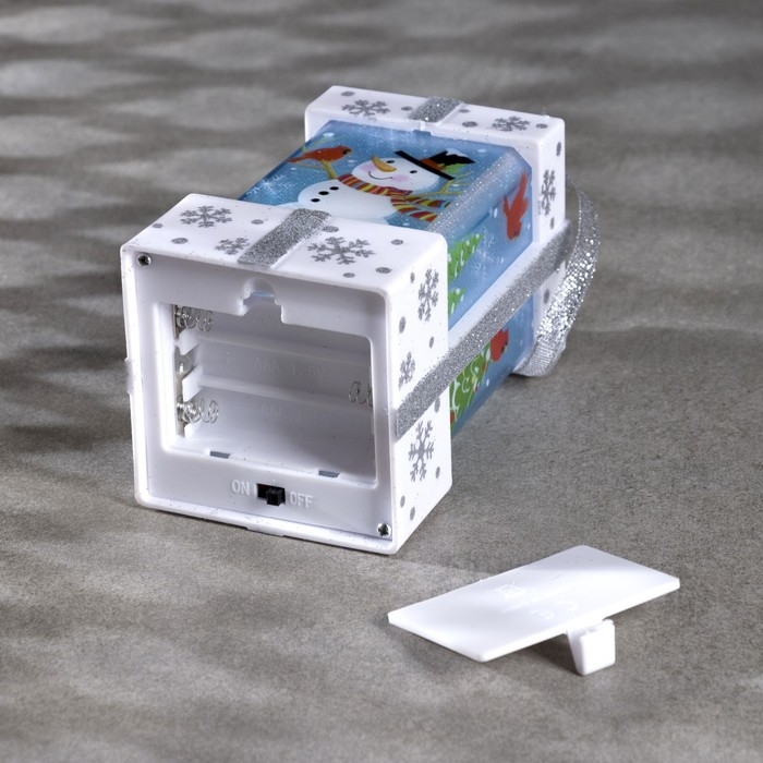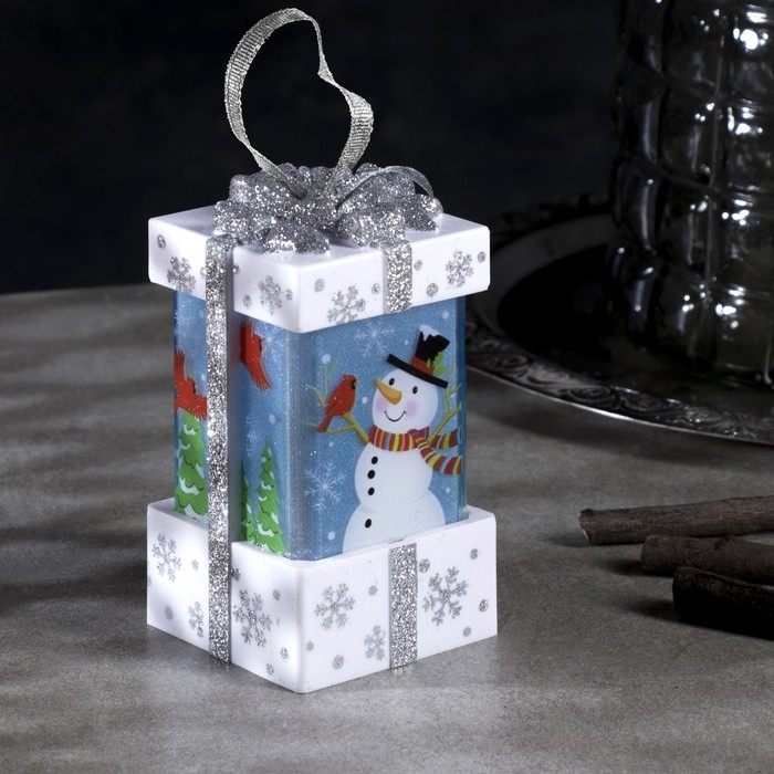 Светодиодная фигура «Белый подарок со снеговиком» 6.3 × 11.5 × 6.3 см, пластик, батарейки АААх3 (не в комплекте), эффект пламени