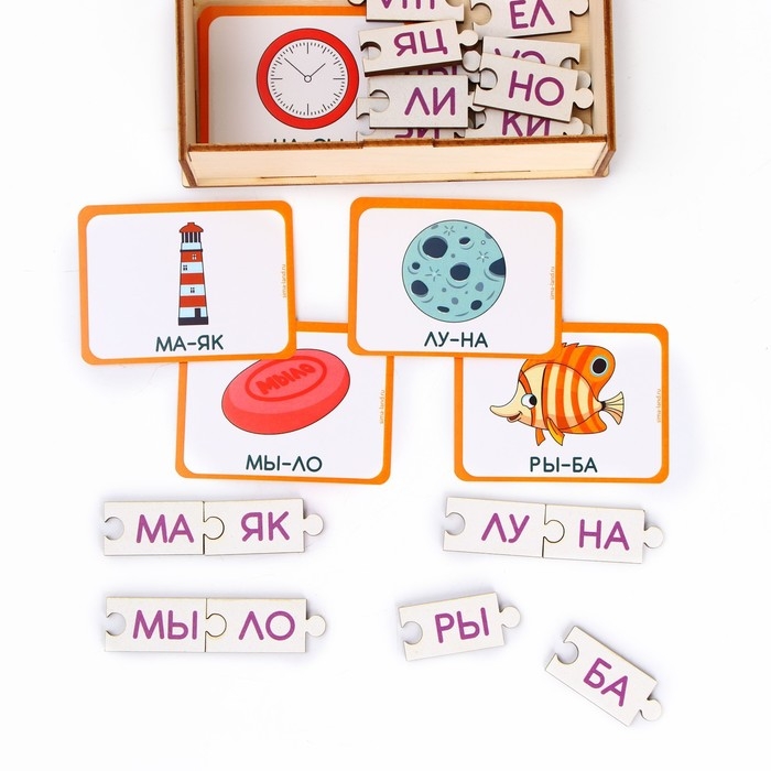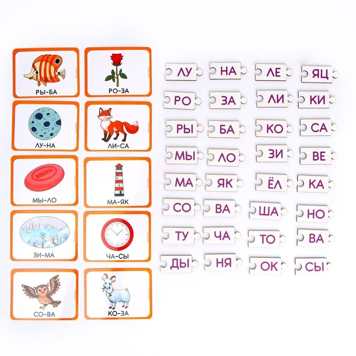 - Попросите ребёнка найти нужные слоги на плашках и собрать их как пазл.
