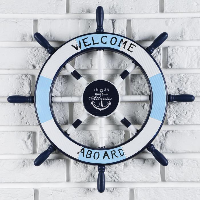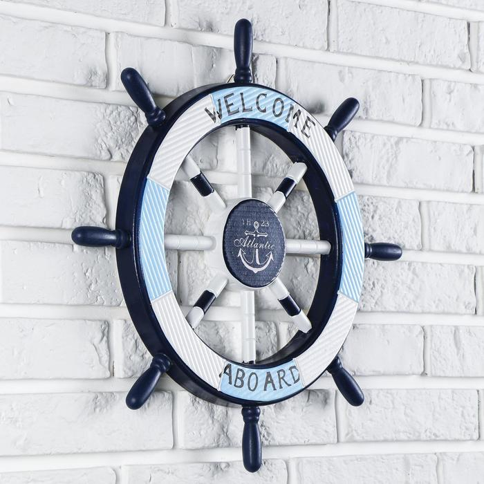 Декор интерьерный «Штурвал» на стену, бело-синий, 45 х 45 х 3 см