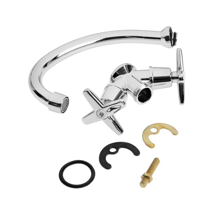 Смеситель для кухни ZEIN ZC2021, двухвентильный, кран-букса латунь 1/2", без подводки, хром