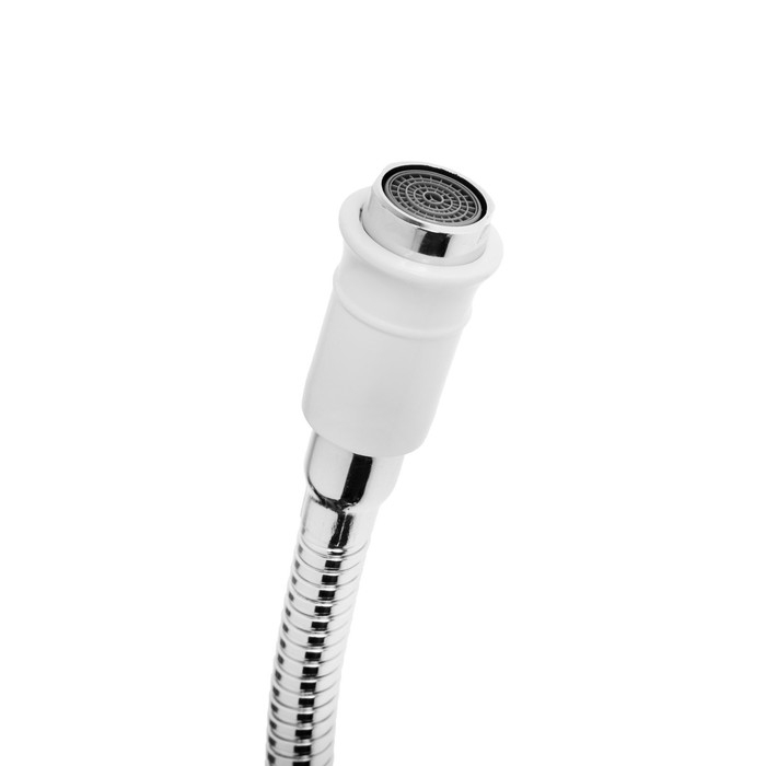 Смеситель для кухни ZEIN ZC2033, гибкий излив, кран-букса латунь 1/2", белый/хром