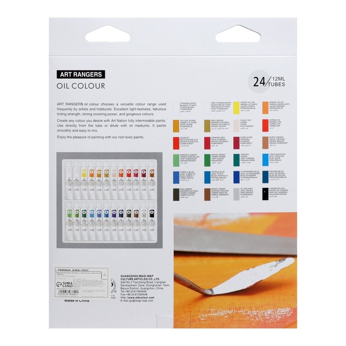 Краски масляные 12 мл, в металлической тубе, в картонной коробке, 24 цвета