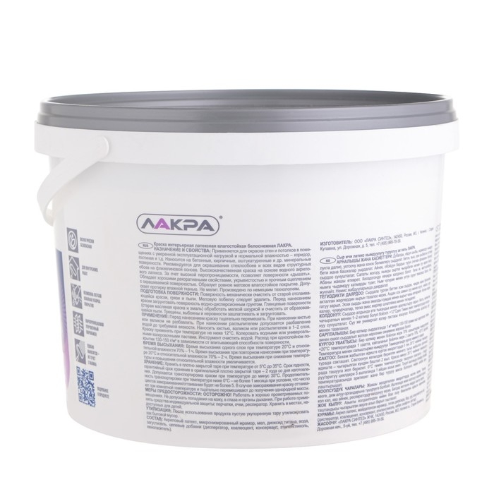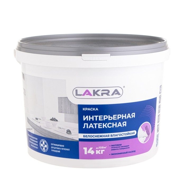 Краска водно-дисперсионная ЛАКРА латексная интерьерная влагостойкая 14кг