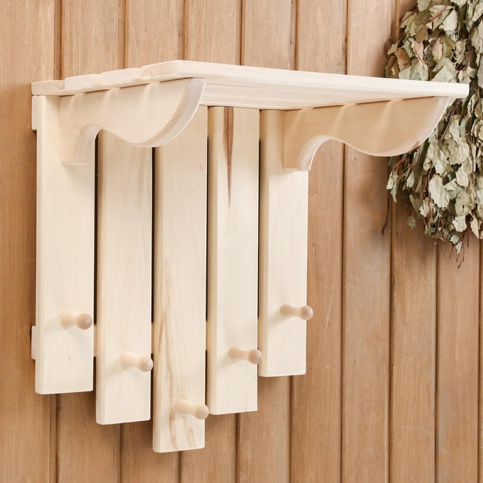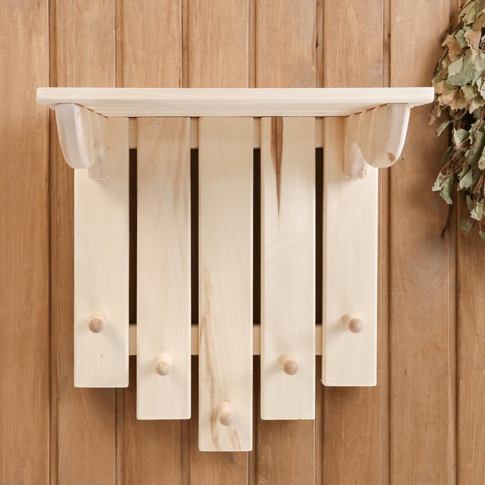 Полка-вешалка большая 5 крючков 33смх39смх45см, липа "Добропаровъ"