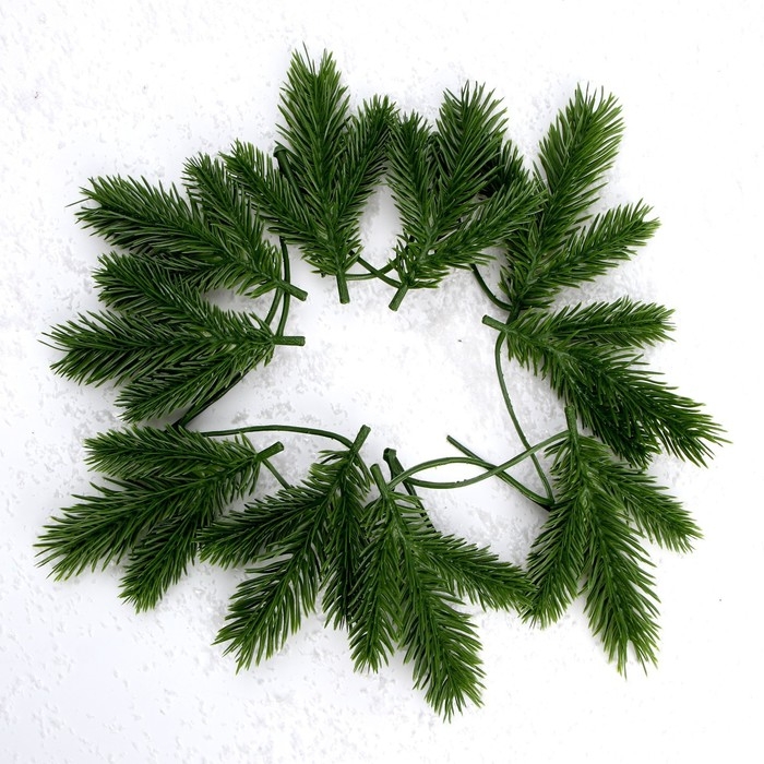 Декор для творчества выполнен в виде еловых веток. Они сделаны из пластика, являются декоративной имитацией настоящих еловых веток.