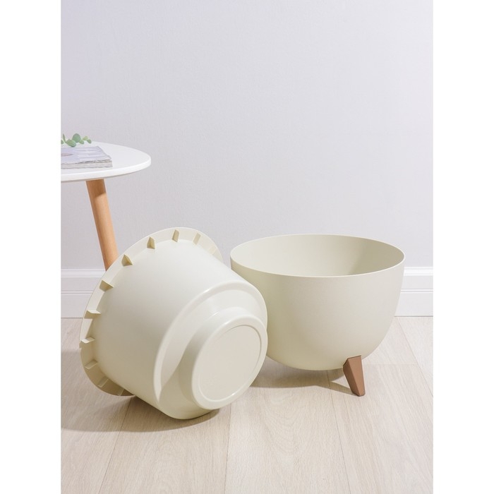 Кашпо на ножках «Флориан», 15,5 л (объём внутренней вставки 12 л), d=35 см, h=25,5 см, цвет белый ротанг