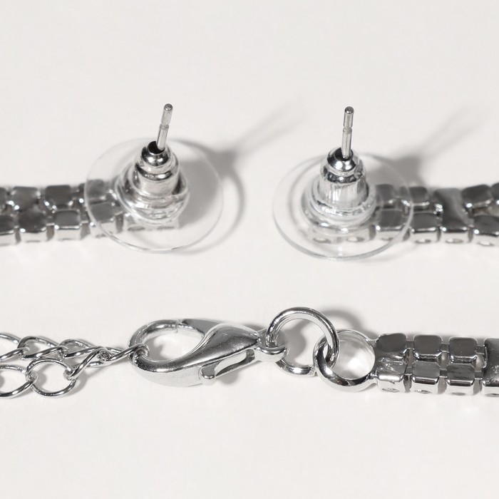 Набор 2 предмета: серьги, чокер «Лёд» три ряда, цвет белый в серебре, 30 см