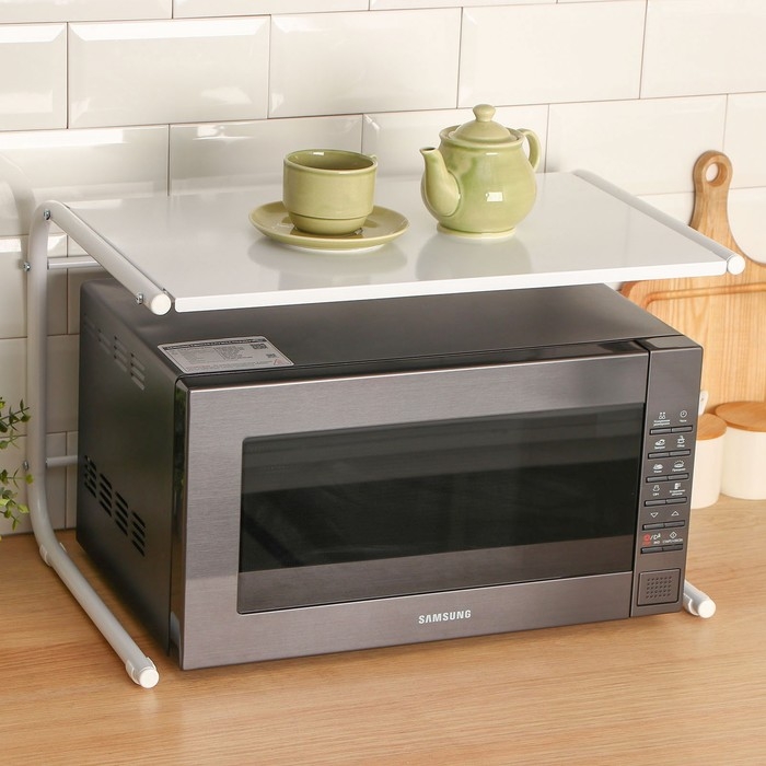 Практичная и многофункциональная настольная этажерка - это нестандартное решение для экономии места и компактного хранения принадлежностей на кухне, например над микроволновой печью / СВЧ. На этажерке можно разместить чайник, мультиварку, микроволновку. Помимо этого можно хранить различные специи, приправы, тарелки, чашки или столовые приборы, которые будут всегда под рукой. Такое оригинальное решение позволит правильно организовать внутреннее пространство и систему хранения вещей на кухне.