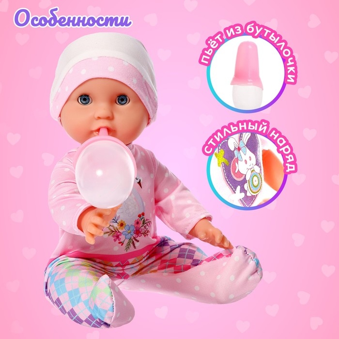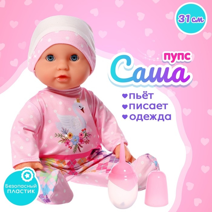 Пупс функциональный «Саша», с бутылочкой, пьёт, писает, цвет розовый