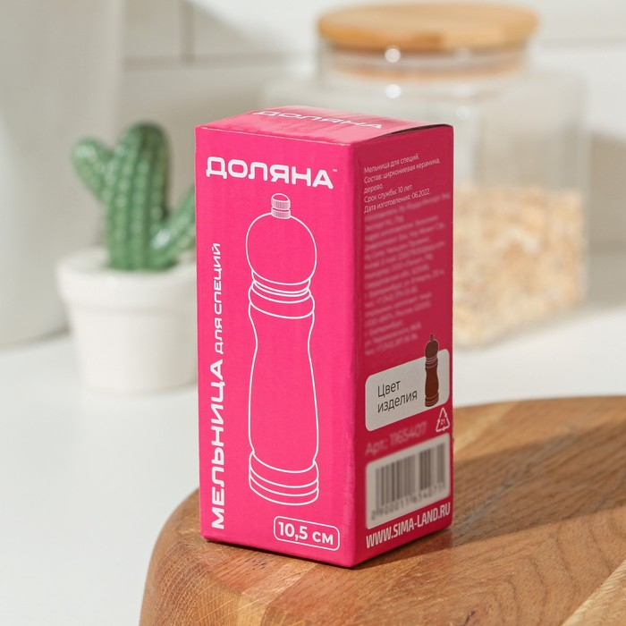 Мельница для специй Доляна «Дуновение леса», 10,5×4,5 см, керамический механизм, цвет коричневый
