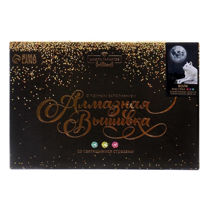 Алмазная мозаика с полным заполнением со светящимися стразами на холсте «Волк», 20 х 30 см