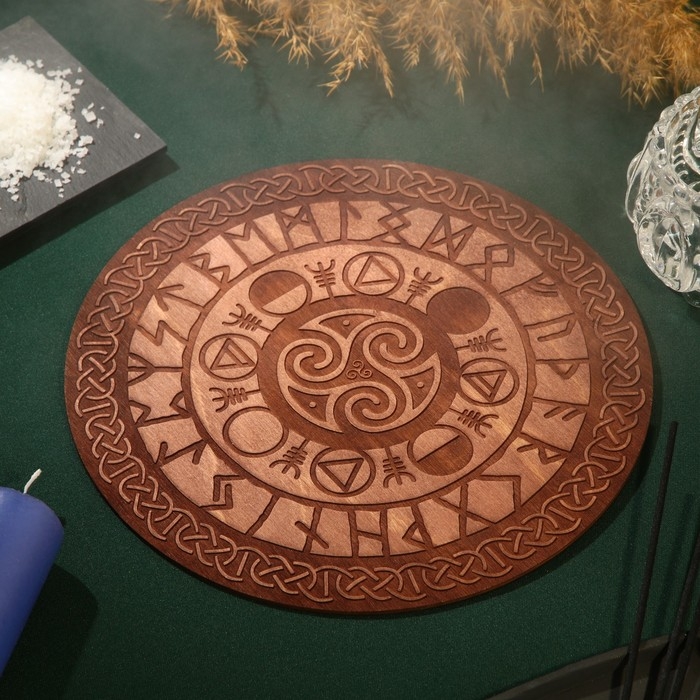 Алтарь для ритуалов «Руны старшего Футарка», деревянный, D=24 см
