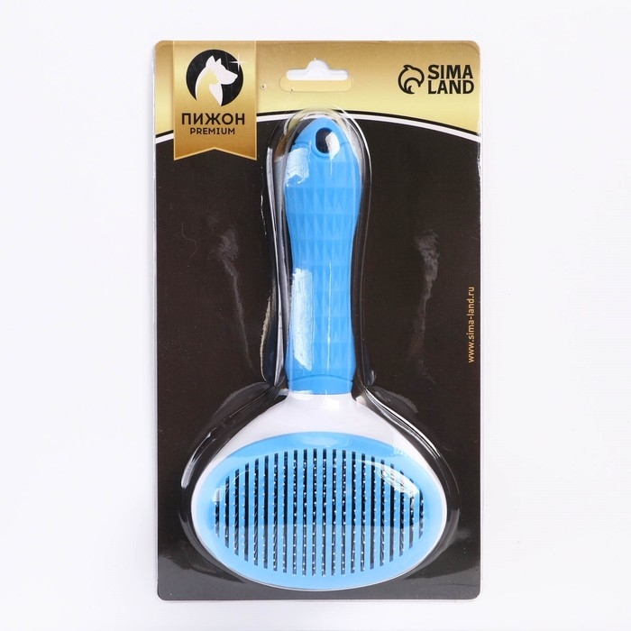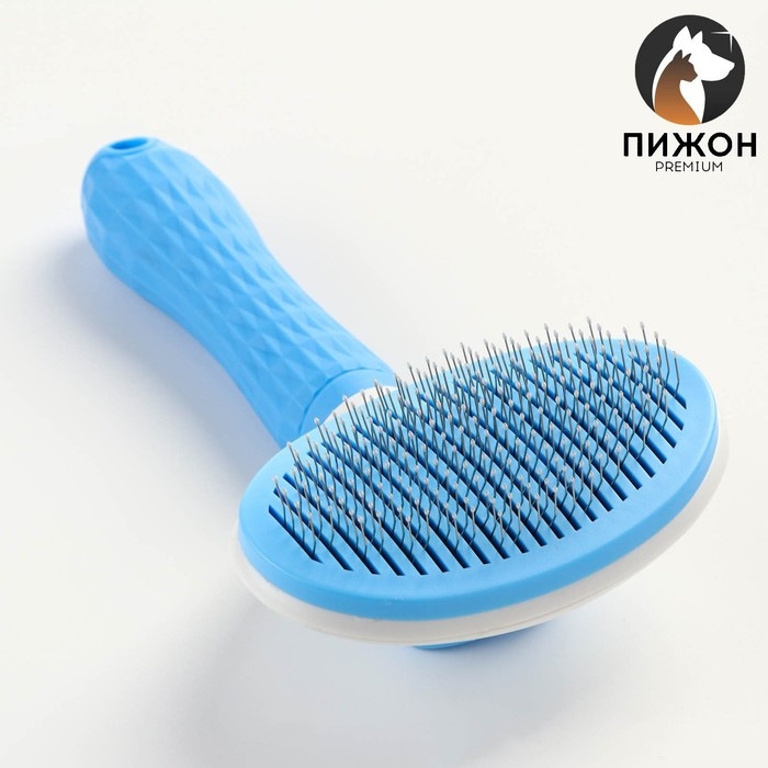 Пуходёрка с самоочисткой Пижон Premium округлая, с каплями, 10 х 19 см, голубая