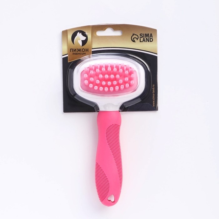 Щётка шерсти с удлиненными силиконовыми зубцами и массажным эффектом, 8 х 17, розовая
