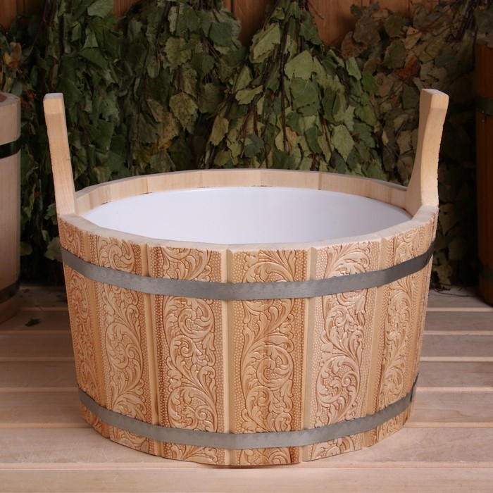 Шайка-таз из липы, 15 л, круглая, пластиковая вставка, "Добропаровъ"
