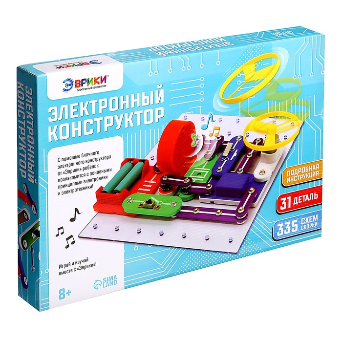 Конструктор электронный «Эврики», 335 схем, 31 элемент, работает от батареек