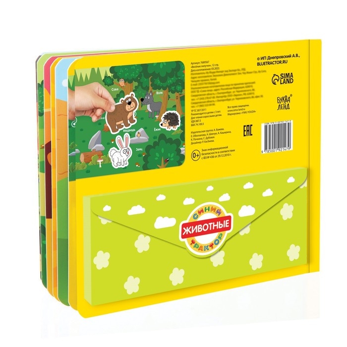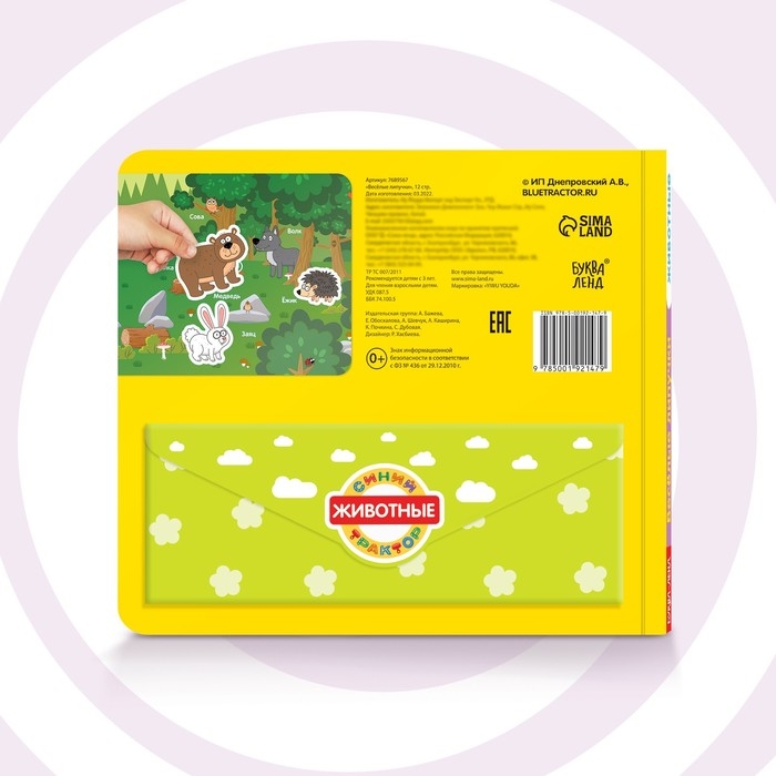 - Чтобы липучки не потерялись после игры, сложите их в специальный конверт на обороте книги.