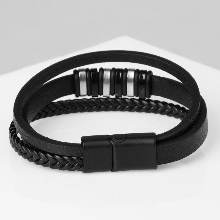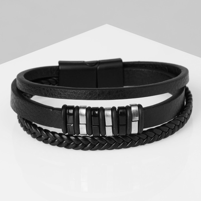 Браслет унисекс «Мощь» три звена, цвет чёрный с чёрно-серебряным металлом, 21,5 см