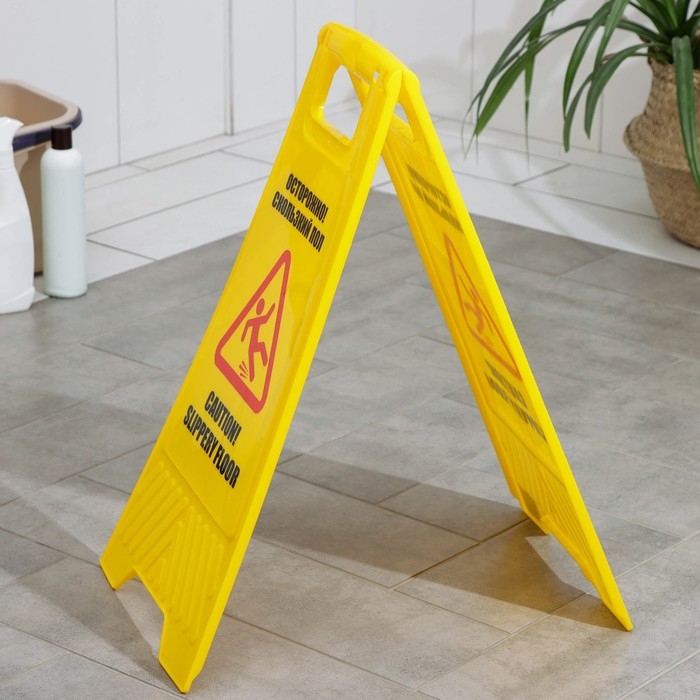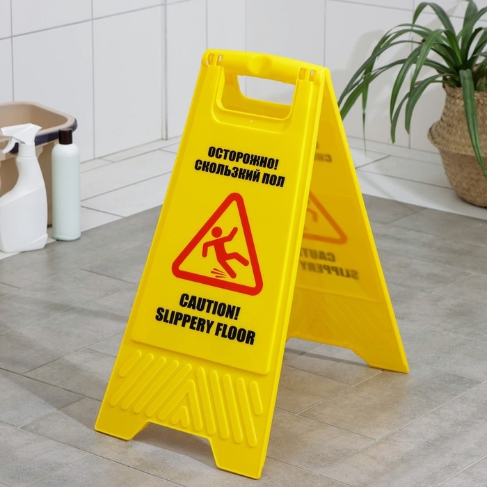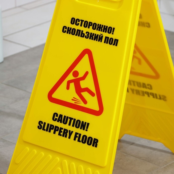 Знак «Осторожно! Скользкий пол», 61×30 см, пластик, цвет жёлтый