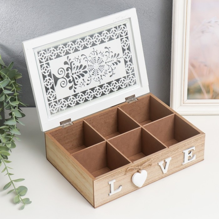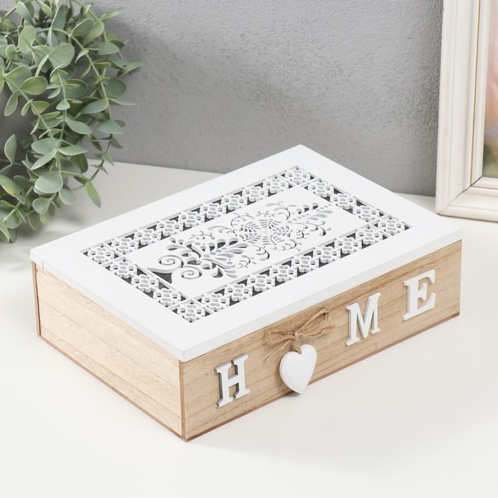 Шкатулка дерево с делениями "Белые ажурные узоры" 17х24х7 см МИКС