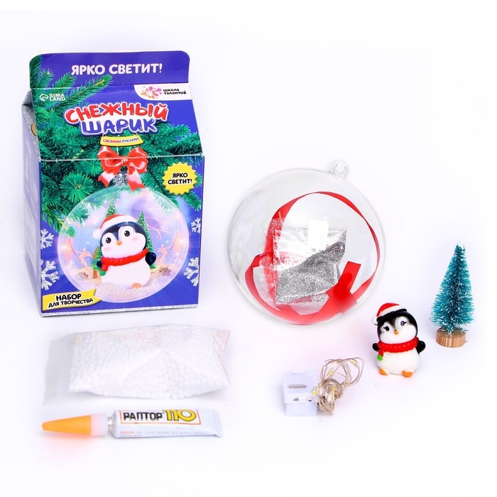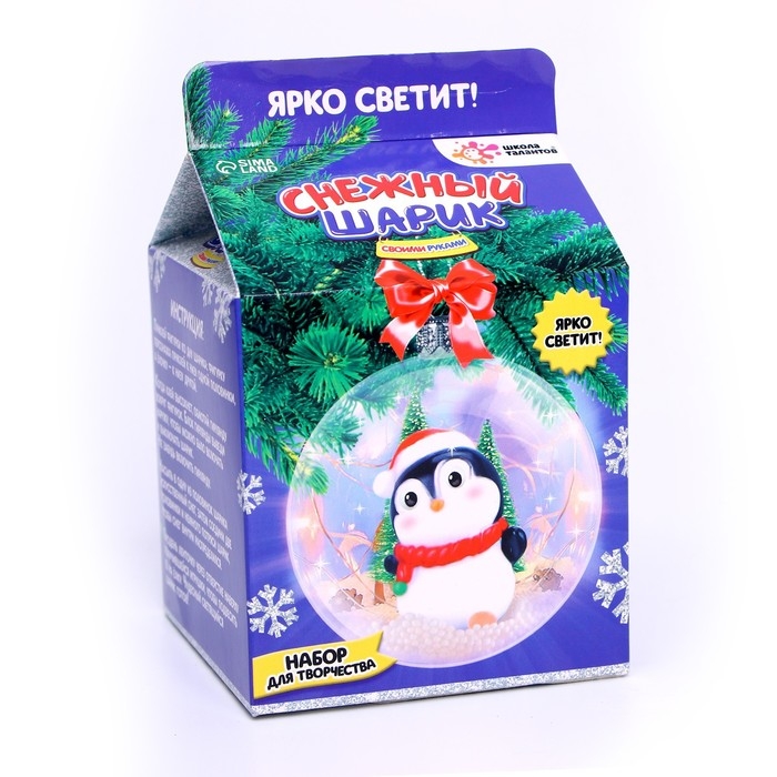 С набором для творчества от «Школы талантов» вы легко создадите новогодний снежный шарик — просто следуйте инструкции.