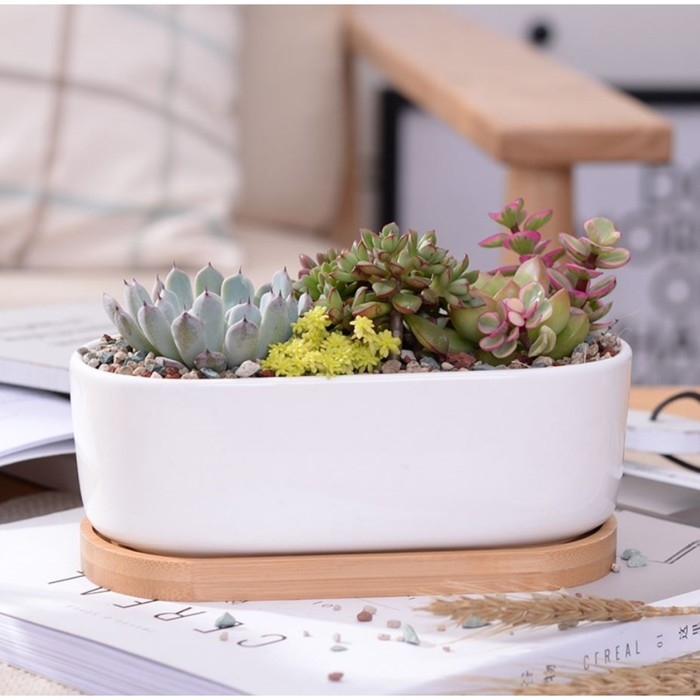 Горшок "Эко Бонсай" овал, 17х9х6см, белый