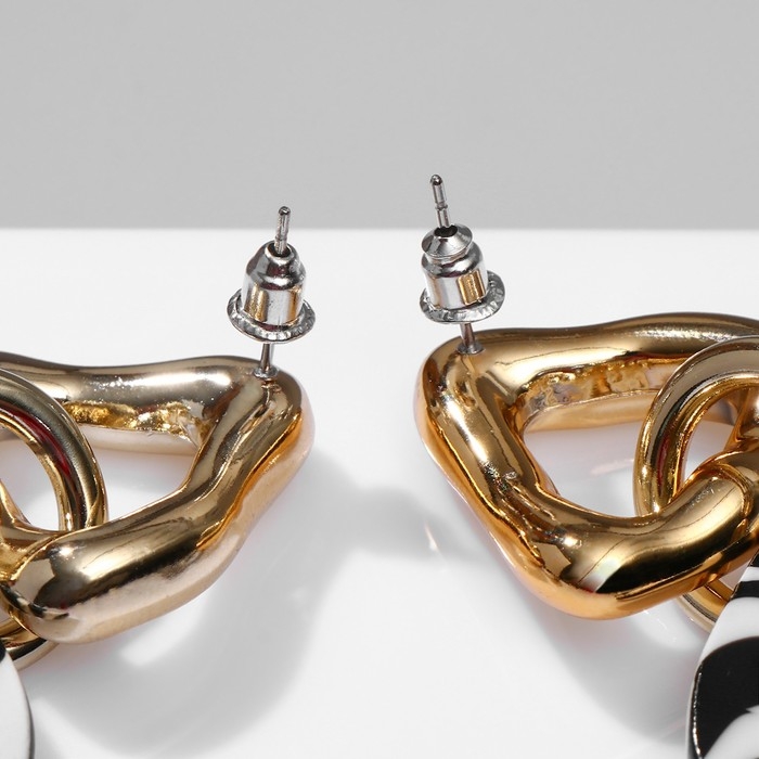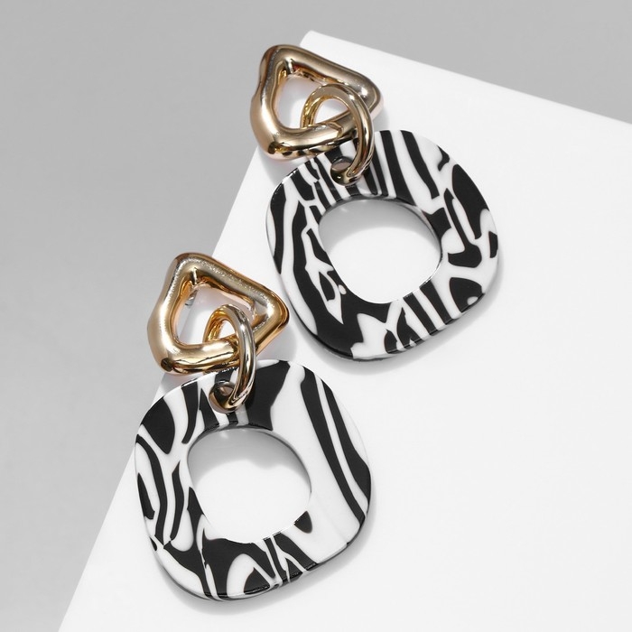 Серьги акрил «Зебра» цепи, цвет чёрно-белый в золоте