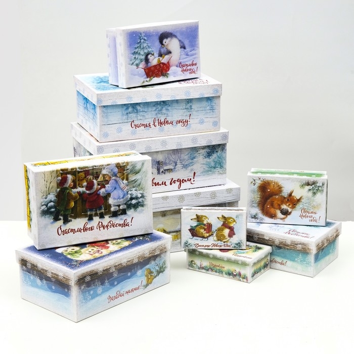 Набор коробок с интересным новогодним дизайном поможет создать яркий и запоминающийся подарок, который приятно удивит получателя.
