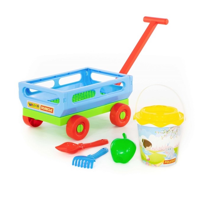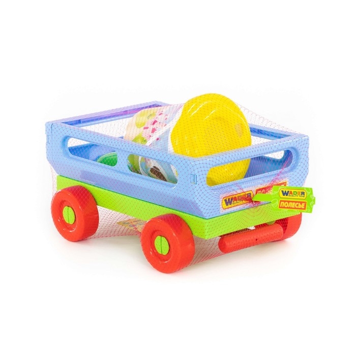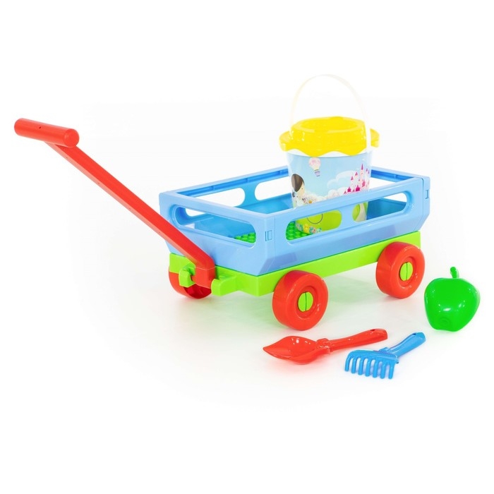 Набор для игры в песке №420: тележка, ведро, ситечко, лопатка, грабельки, формочка