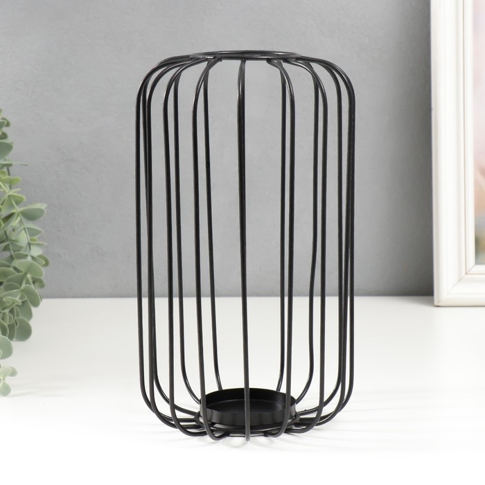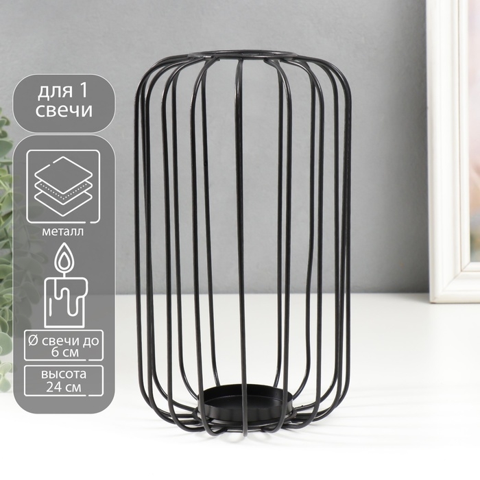 Подсвечник металл на 1 свечу "Лофт. Прутья" чёрный 24х13,5х13,5 см