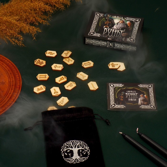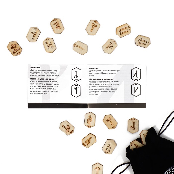 В инструкции вы сможете найти несколько способов гадания на ведьминых рунах, а также толкование каждой из 18 рун.