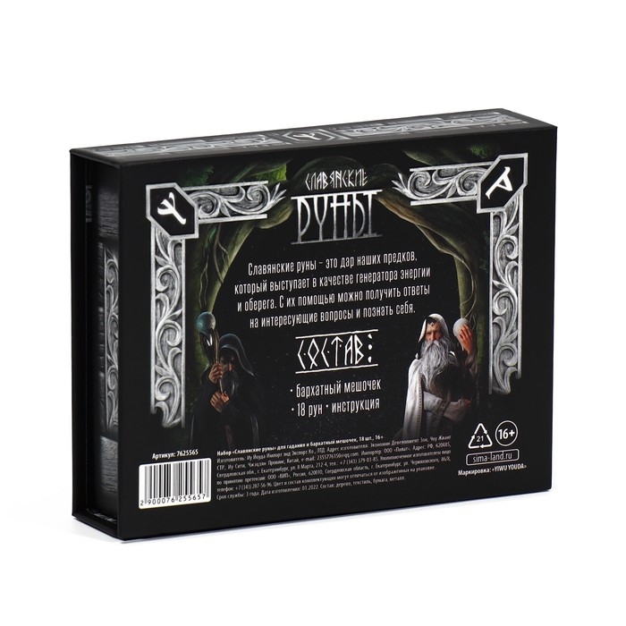 Руны гадальные «Славянские», 18 рун, бархатный мешочек (12х18 см), 16+